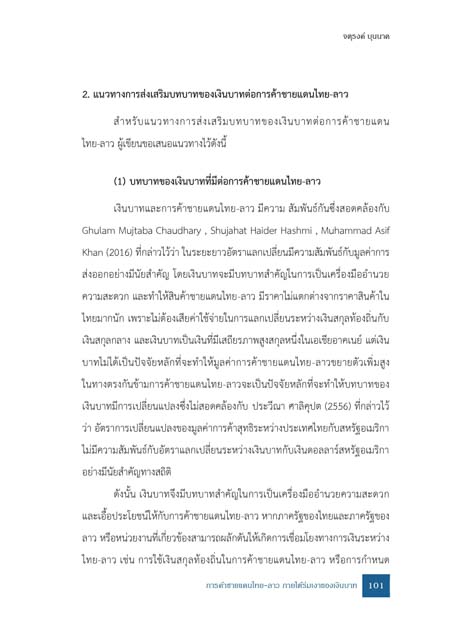 (1) บทบาทของเงินบาทที่มีต่อการค้าชายแดนไทย-ลาว