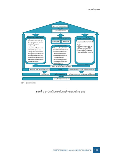 จตุรงค์ บุนนาค ที่มา : จากการศึกษา ภาพที่ 9 สรุปผลเงินบาทกับการค้าชายแดนไทย-ลาว การค้าชายแดนไทย-ลาว ภายใต้ร่มเงาของเงินบาท 107