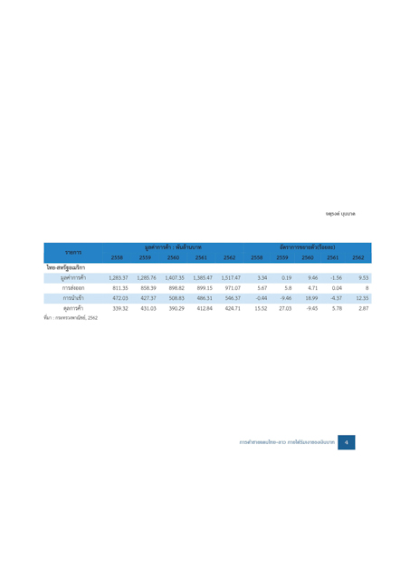 มูลค่าการค้า 1,283.37 1,285.76 1,407.35 1,385.47 1,517.47 3.34 0.19 9.46 -1.56 9.53