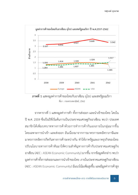 ภาพที่ 1 แสดงมูลค่าการค้าของไทยกับอาเซียน ยุโรป และสหรัฐอเมริกา