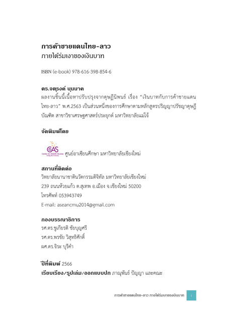 ผลงานชิ้นนี้เนื้อหาปรับปรุงจากดุษฏีนิพนธ์ เรื่อง “เงินบาทกับการค้าชายแดน
