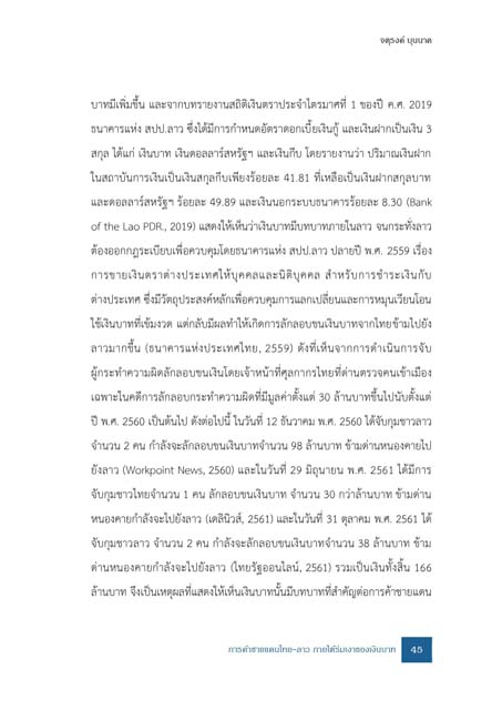 of the Lao PDR., 2019) แสดงให้เห็นว่าเงินบาทมีบทบาทภายในลาว จนกระทั่งลาว