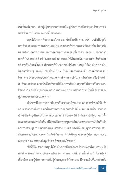 การค้าชายแดนไทย-ลาว ภายใต้ร่มเงาของเงินบาท 54