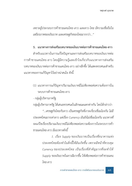 5. แนวทางการส่งเสริมบทบาทของเงินบาทต่อการค้าชายแดนไทย-ลาว