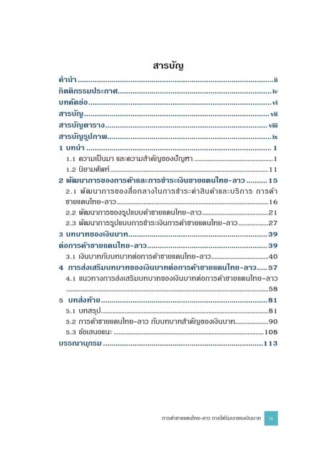 การค้าชายแดนไทย-ลาว ภายใต้ร่มเงาของเงินบาท vii