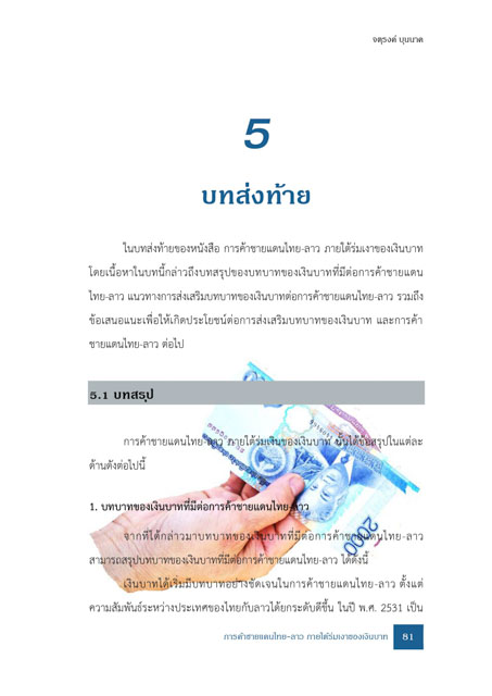 โดยเนื้อหาในบทนี้กล่าวถึงบทสรุปของบทบาทของเงินบาทที่มีต่อการค้าชายแดน