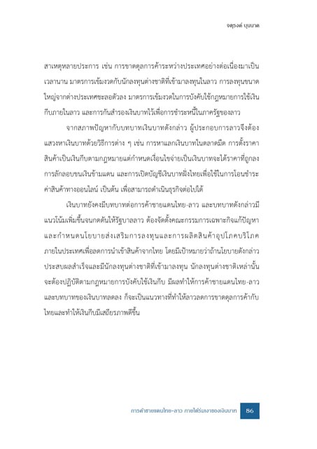 และบทบาทของเงินบาทลดลง ก็จะเป็นแนวทางที่ท าให้ลาวลดการขาดดุลการค้ากับ