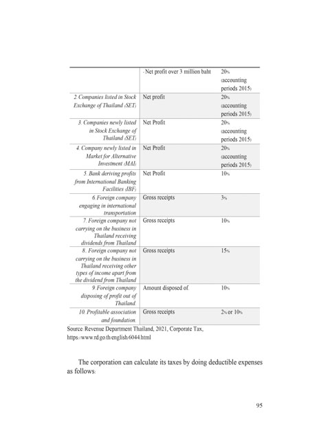 Source: Revenue Department Thailand, 2021, Corporate Tax,