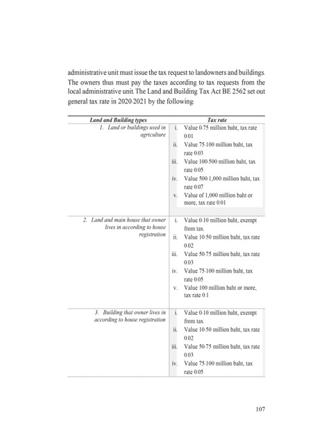 local administrative unit. The Land and Building Tax Act BE 2562 set out