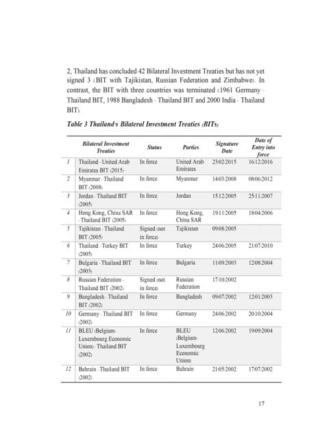 Table 3 Thailand’s Bilateral Investment Treaties (BITs)