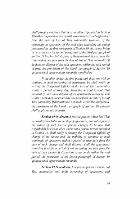 Section 19 bis, he shall dispose of the apartment that exceeds the