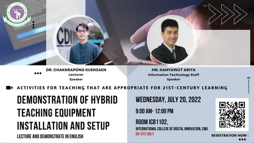 On Wednesday, July 20, 2022, from 9:00 a.m. to 12:00 noon, in Room ICB1102, International College of Digital Innovation,