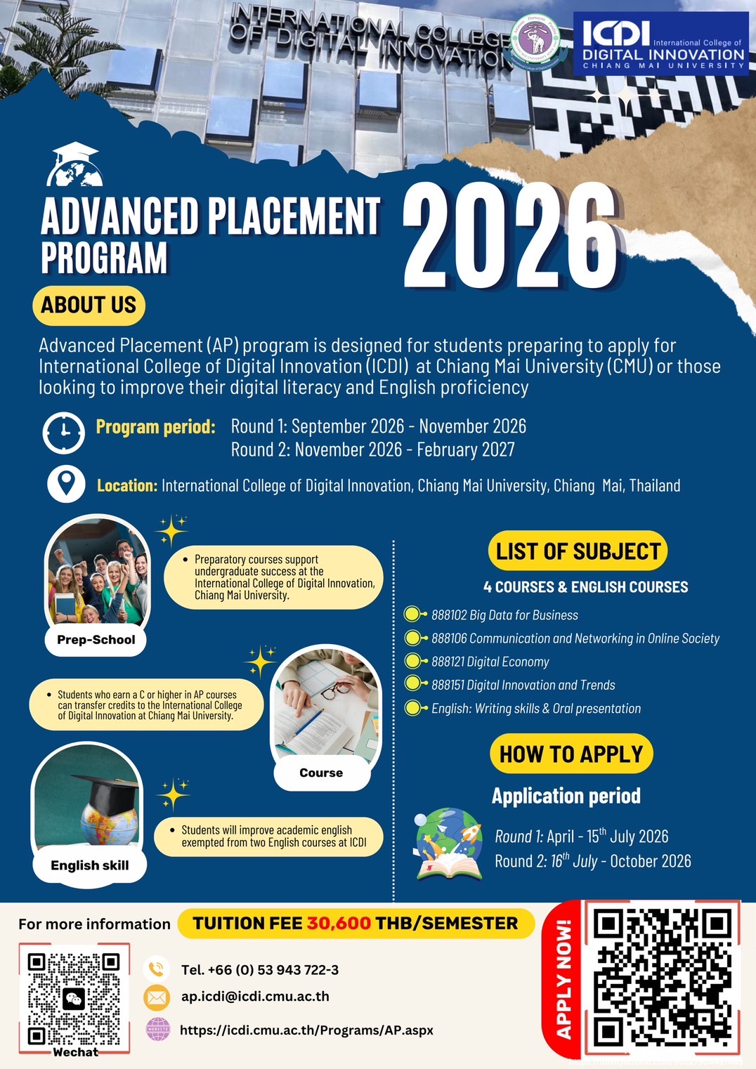 Get ready for studying International Programs of bachelor's degree (4 years) at International College of Digital Innovation, Chiang Mai University.
